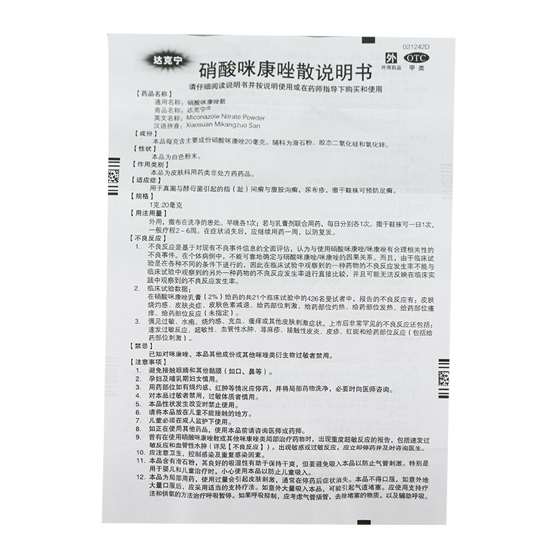 达克宁 Нитрат нитрат нитрат нитрат 40 г Внешнее использование футов Qi Qi и удалите запах ног против спортсменов, анти -фунгальный порошок бутылки
