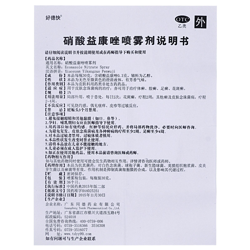 好德快 Nitrate Yikongzole Spray 30 г Tinea tinea tinea teanea, ноги Tinea, зуд, вонючий раствор, tinea tinea, cc, cc
