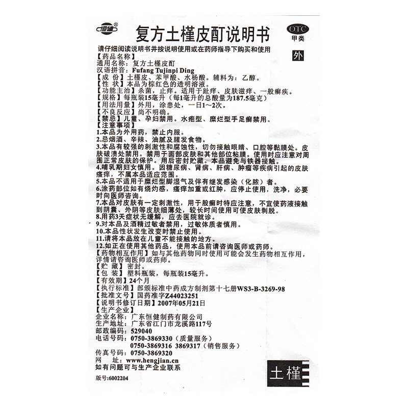 Hengjian составная настойка коры гибискуса 15 мл для зуда кожи, зуда пальцев рук, зуда пальцев ног, стерилизующее и противозудное наружное дезинфицирующее средство