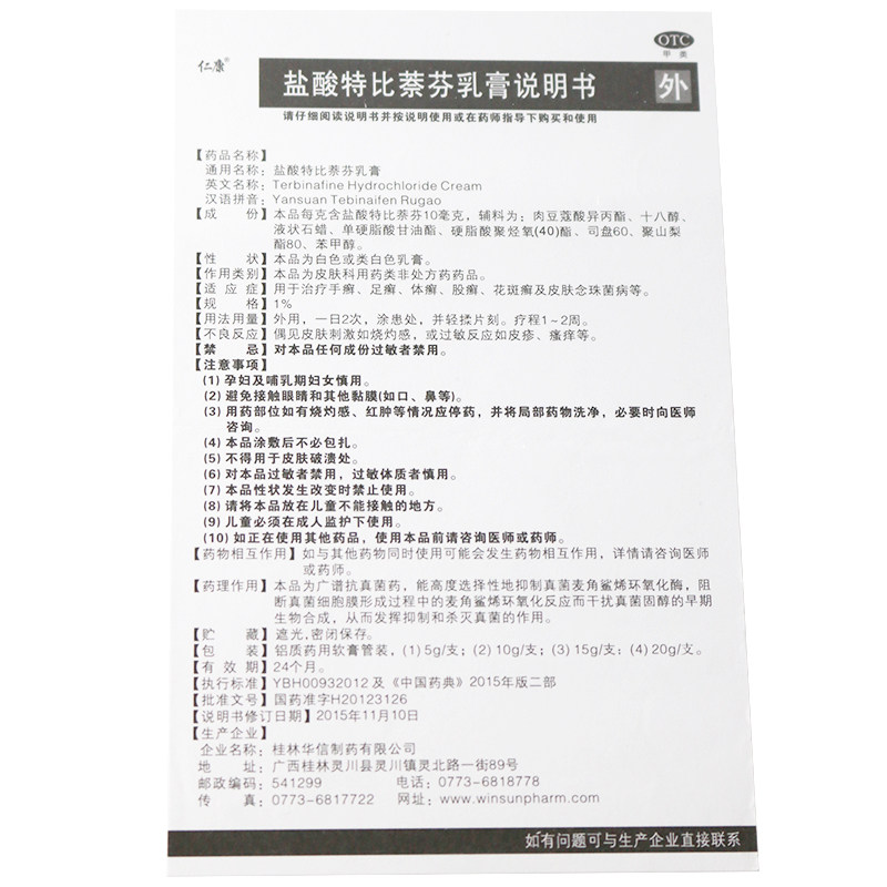 仁康 Гидрохлорид Тербин Фен Фен Крем 15 Г
