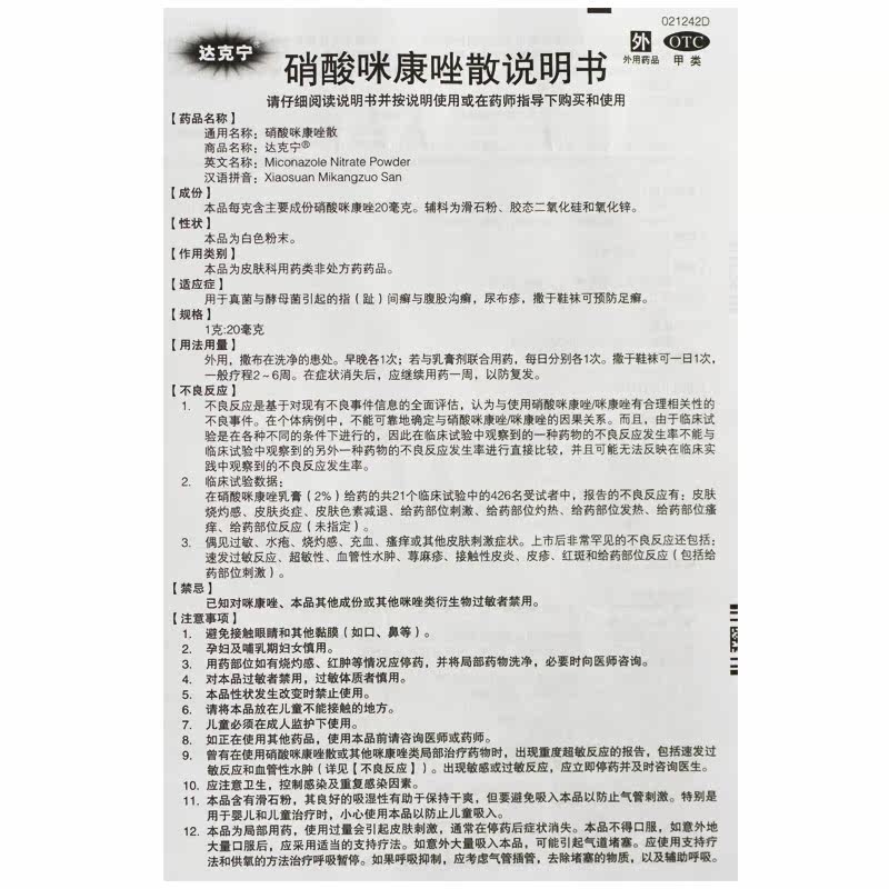 达克宁 Нитрат нитрат свободный 20 г удалите свеклу, порошок из битера, стрипленный липись, грибковая инфекция, лекарство от терапии Beath Rk Rk