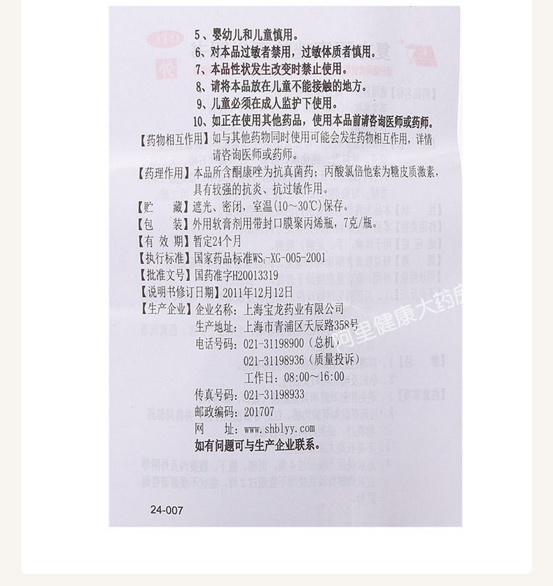 上龙 Составной кетоновый кандозол мазь 7G Шанхайская рука, ноги, стригущий лирий, стричья и стригущий лишай, взрослый