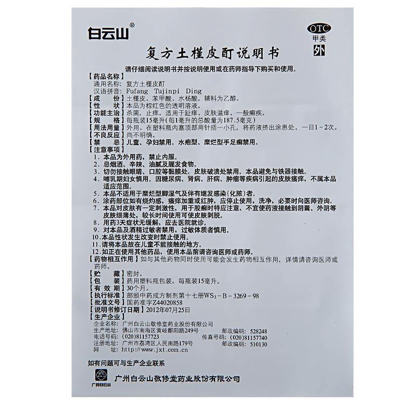 Baiyunshan jingxiu House Compound Hibiscus кожа 15 мл ног зуд, зуд, стерилизация, зуд кожи, общая лишь лишай