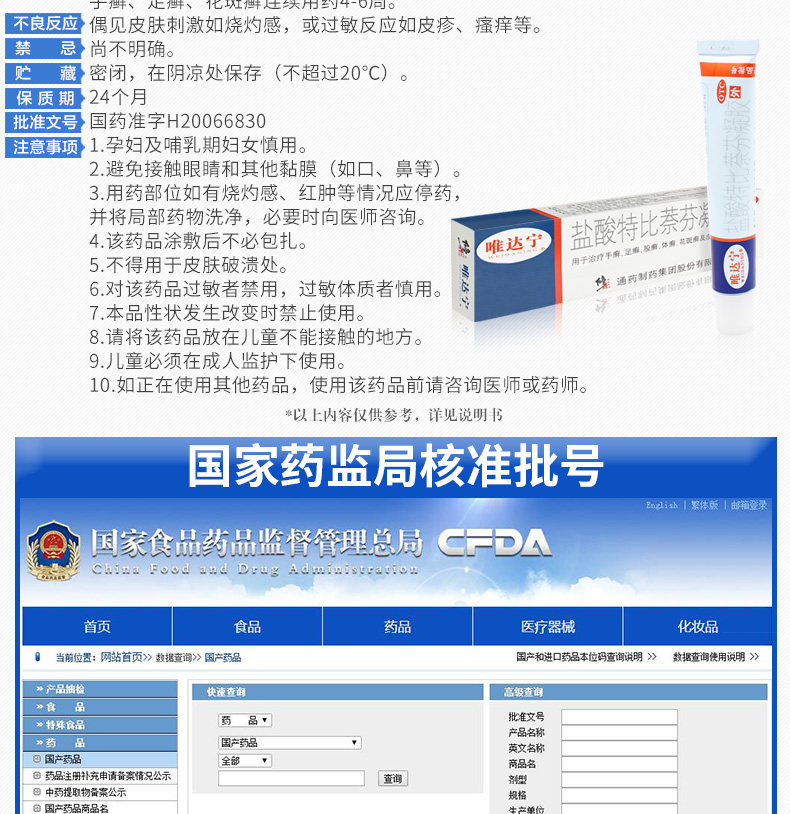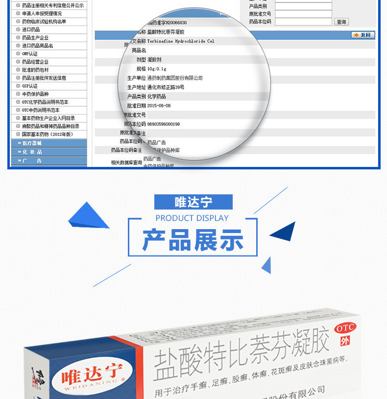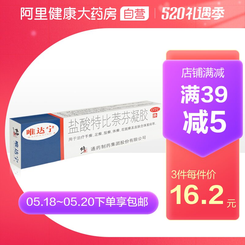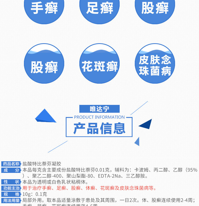 唯达宁 Гель гидрохловой кислоты Тербин Гель 1%*10 г/ящик деварификация кожа кожа Candida candida tinea tinea and tinea