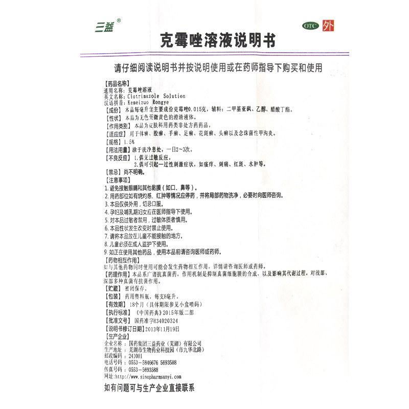 三益 Раствор Clieclomazole 8 мл*1 бутылка/коробка кожи грибковой киски вульва влагалищное вагина.