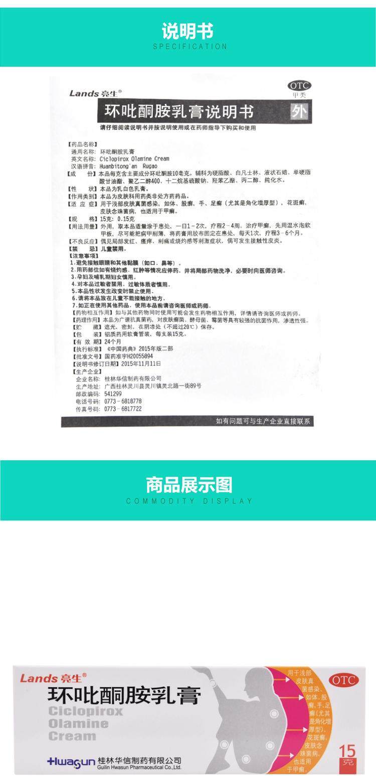 Lands/亮生 Циклор пироминовый крем 1,5%*15G*1 кусок/коробка ашкин кожа гриб