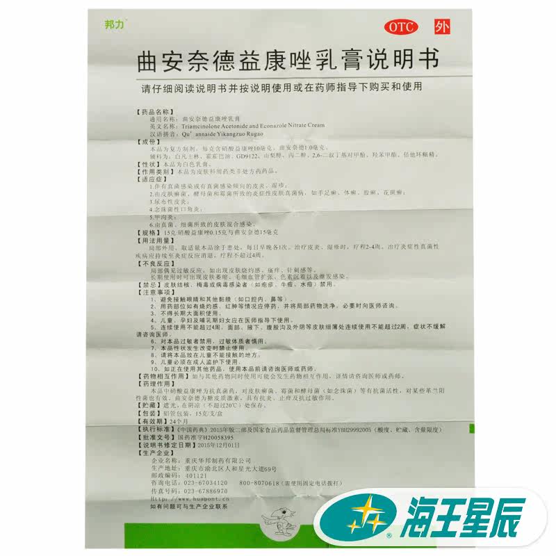邦力 Тяндали yikongzozole cream 15g*1 Поддержка/коробка с помощью tinea, tinea и tinea -foooted dermatitis экзема