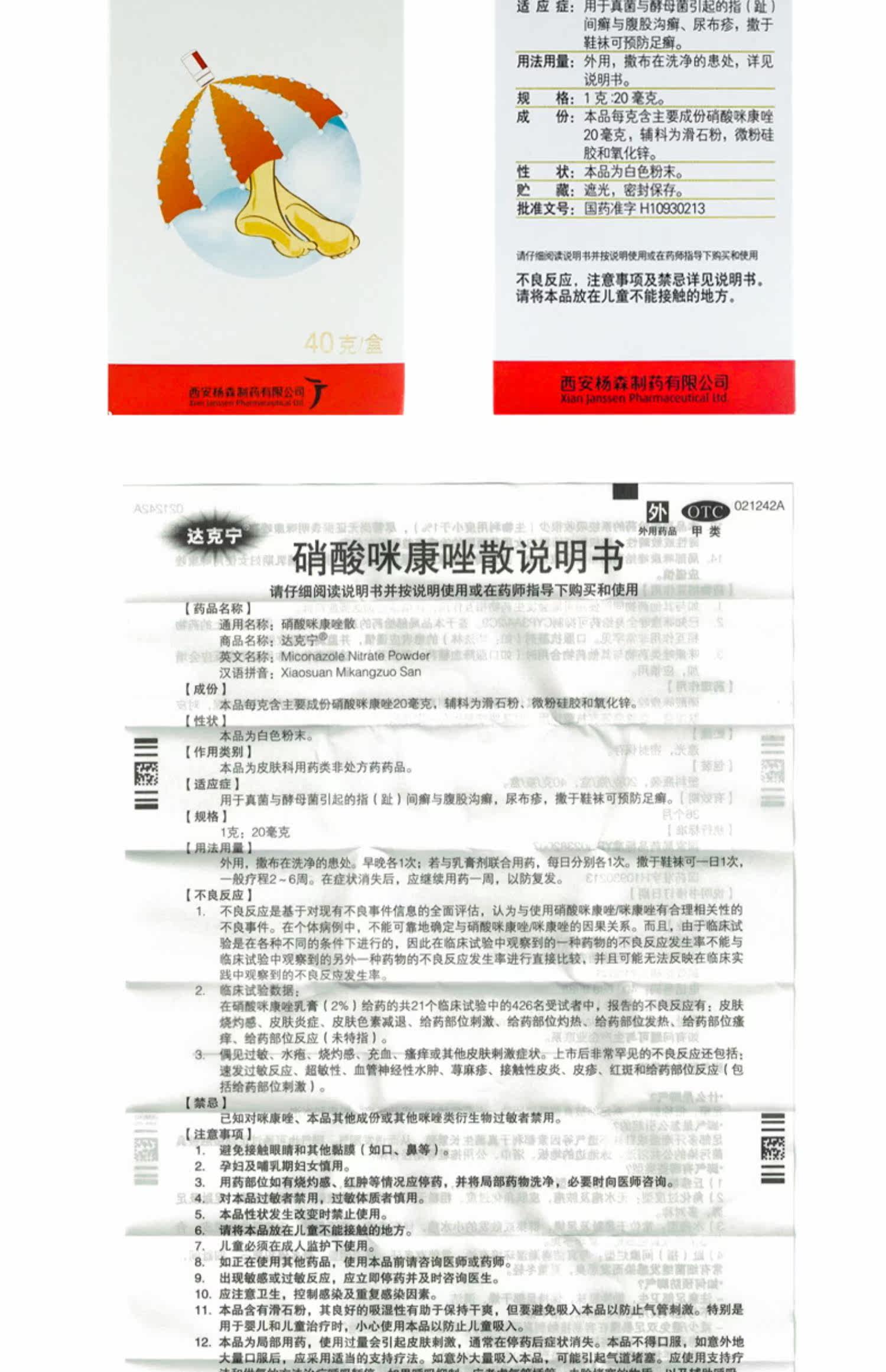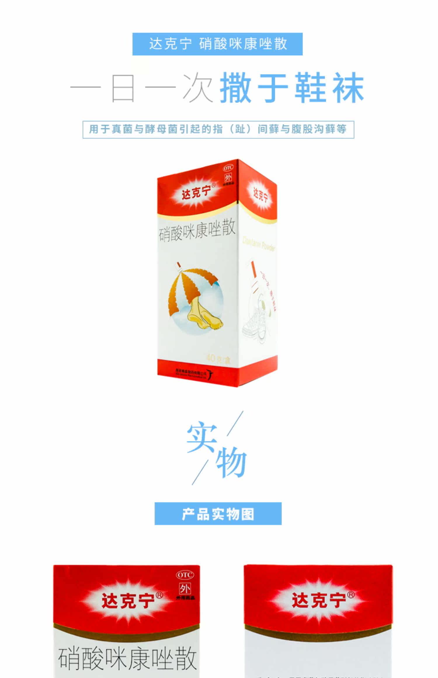 达克宁 Сан-миконазол нитрат порошок 40 г межпальцевый опоясывающий лишай стоп, вызванный грибковыми дрожжами