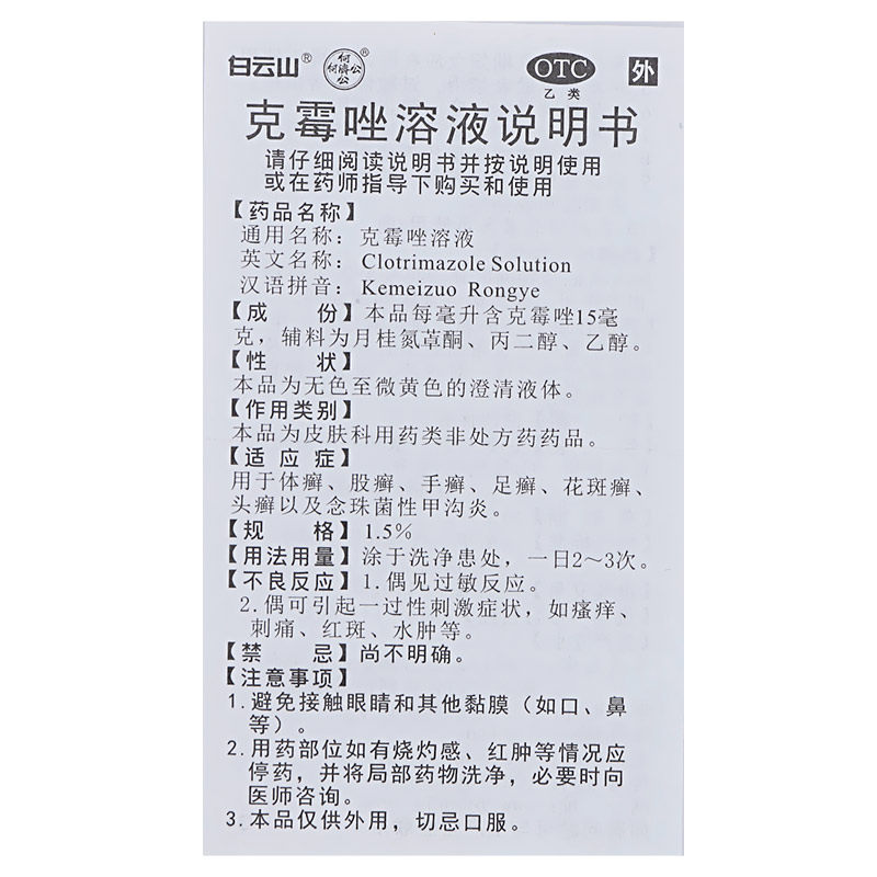 白云山 Heji Gong kemotomazole раствор 8 мл стригущий липись тела, стриглый червь Tinea -Foot, Tinea tinea nails