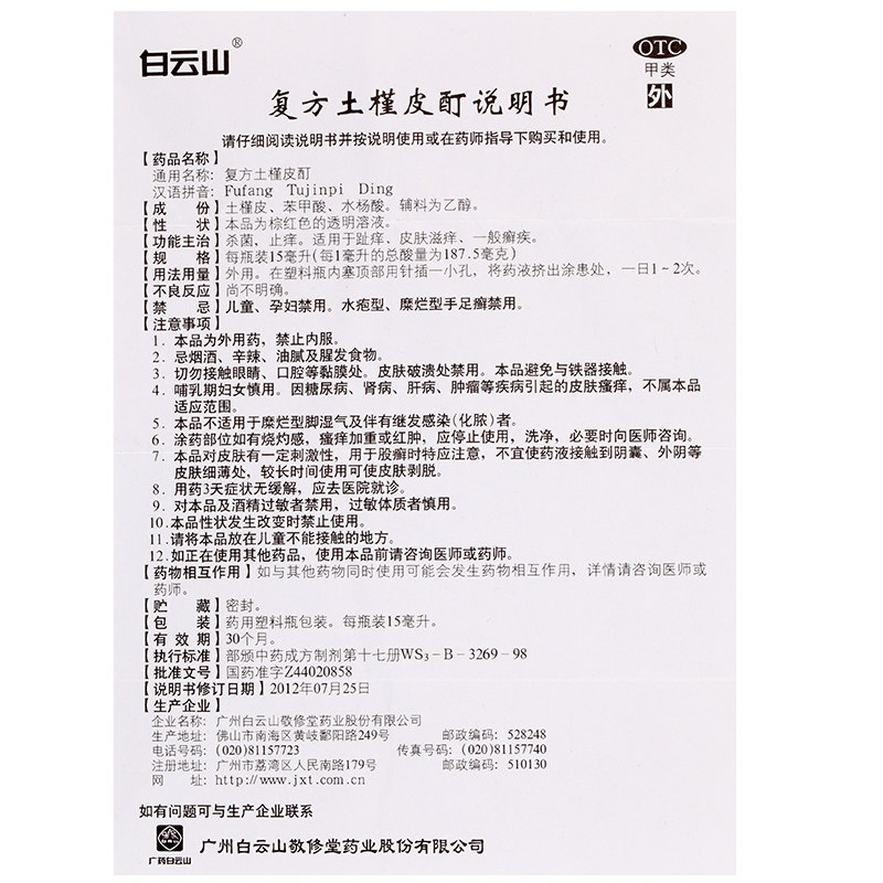 白云山 Составная почвенная настойка кожи гибискуса 15 мл антибактериальное противозудное средство от зуда кожи общее лекарство от опоясывающего лишая для лечения бери-бери