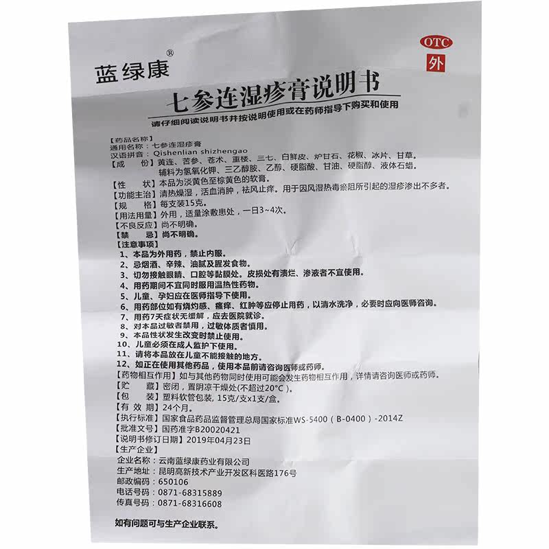Скидка на упаковку] синий и зеленый кан Qidong Eczema Cream 15 г прозрачный тепло, сухой, влажный зуд, антипраритическая экзема