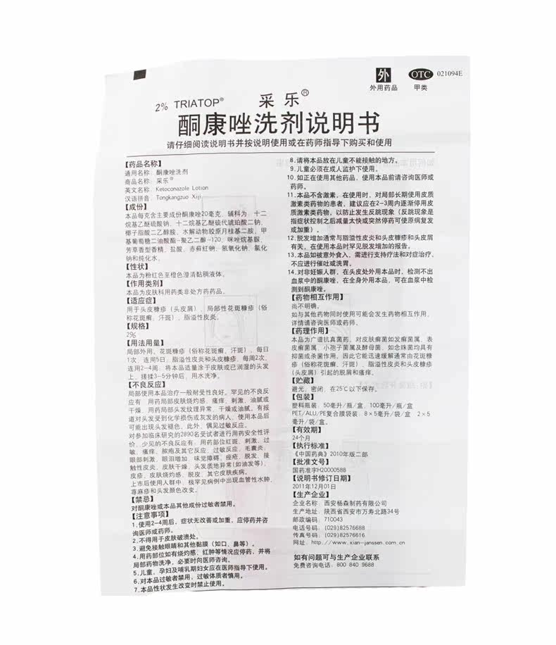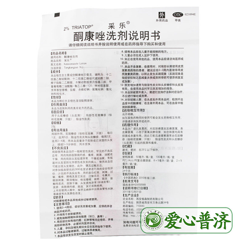 采乐 Кетоконазол промывочный агент Шампунь 50 мл: 2%антипраритового гриба
