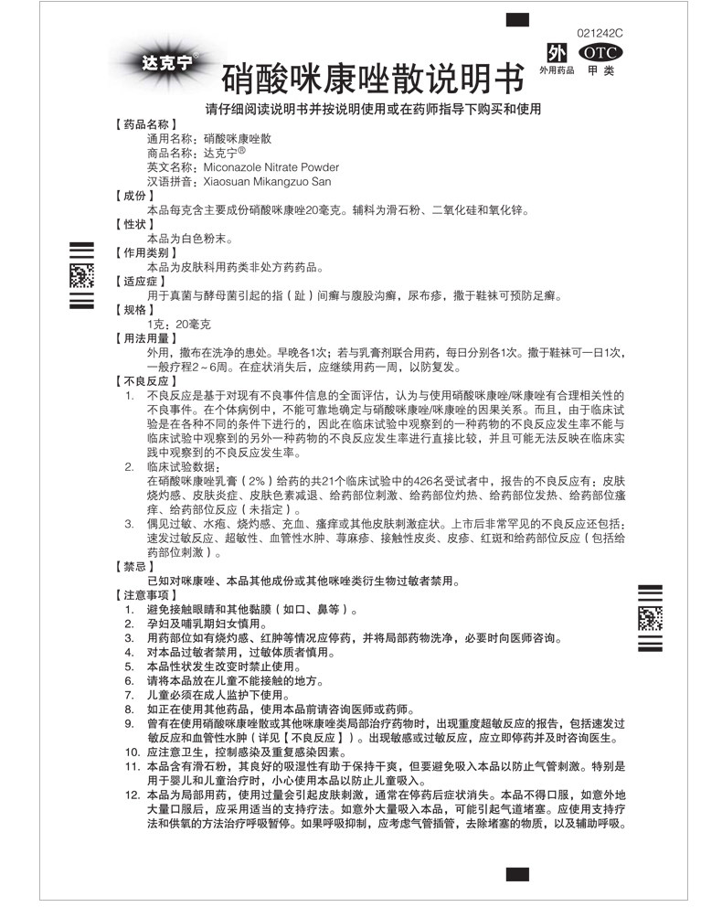 达克宁 Нитрат -миманзол рыхлый агент вонючий розовый розовый слой газа из газа, анти -кишечник и очистка, стерилизованный миконазол