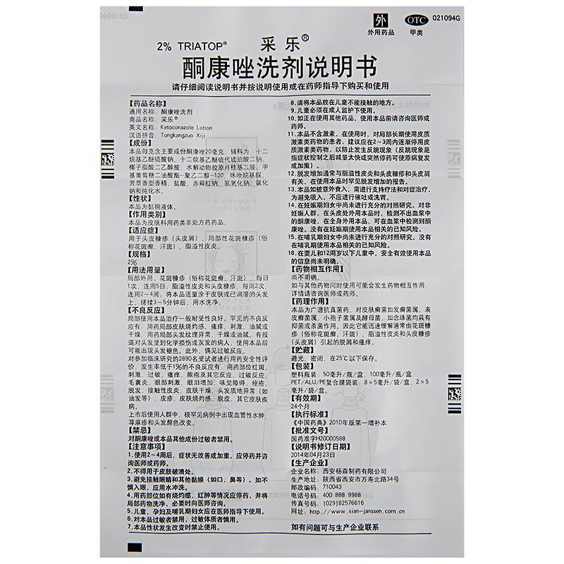 采乐 Кетоконазол промывочный агент 2%*50 мл перхоти, Tinea, Tinea, Sweat Spots, себорейский дерматит