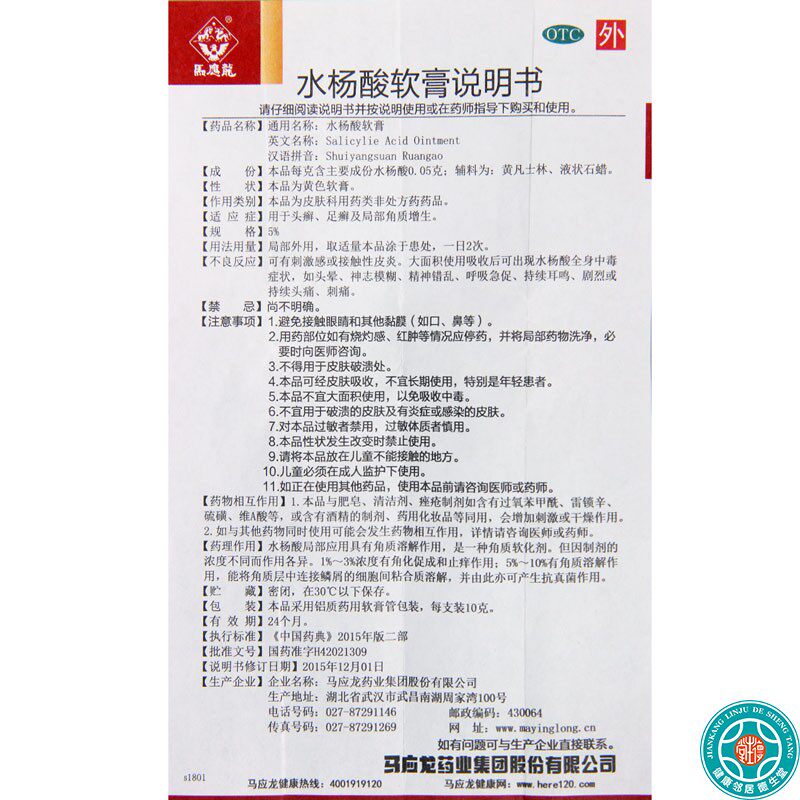 马应龙 Отшелушивающая мазь с салициловой кислотой, 10г