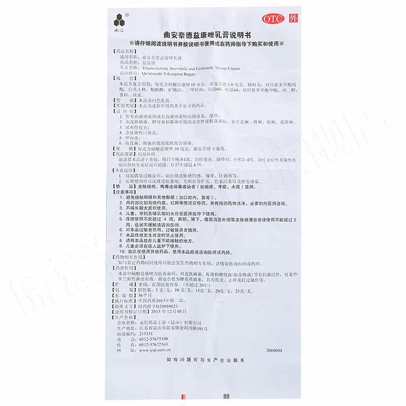永信 Триамцинолона, ацетонида, эконазола, крем, 20 г, грибковая инфекция, дерматит, экзема, стригущий лишай на руках и ногах, для лечения стоп спортсмена.