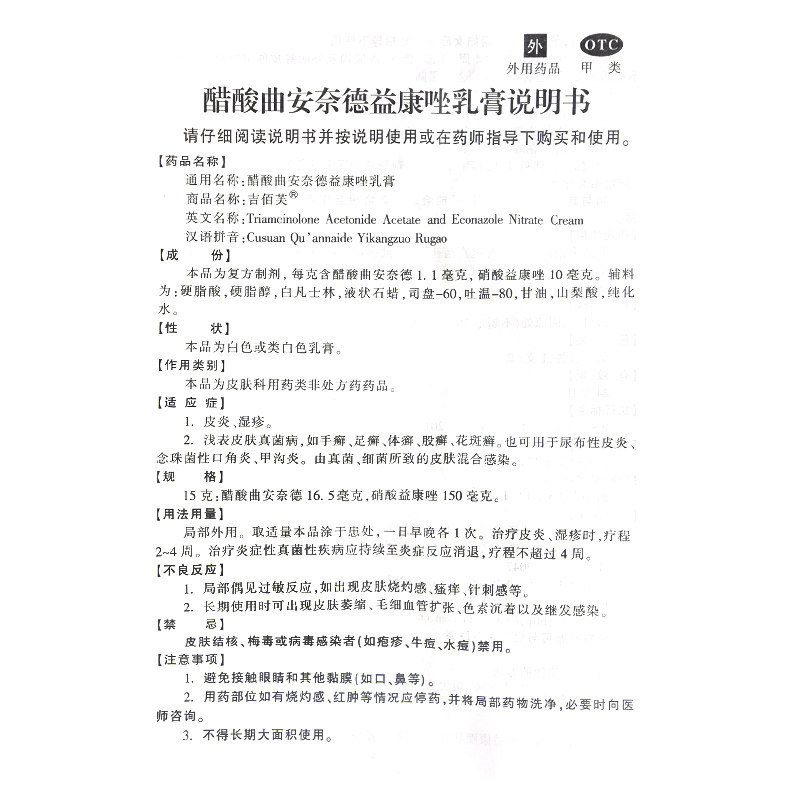 吉佰芙 Уксусная кислота Внутренний yikkonazole cream 15 г дерматит