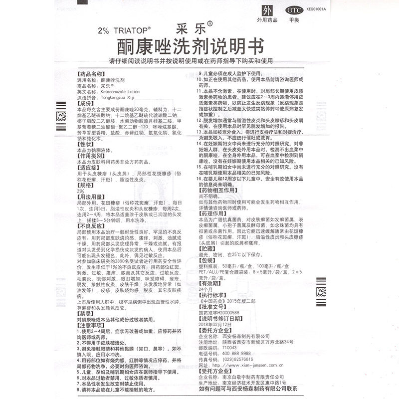 采乐 Кетоконазол промывочный агент 50 мл себорея -дерматит не обрезание шампуней, облегчение зуда, разочарование Сиан Янсена
