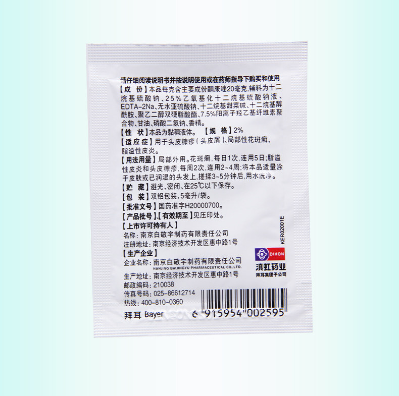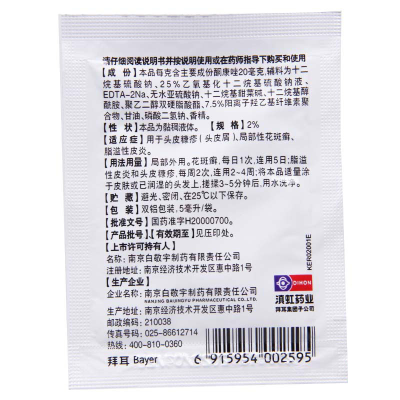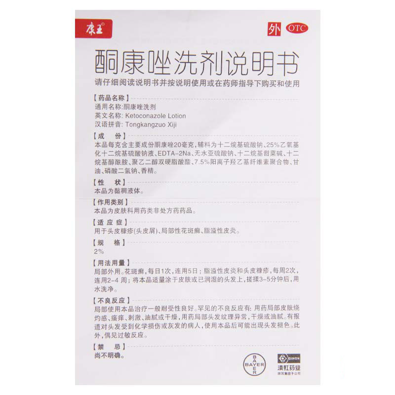 Bayer Conwang Ketoconazole лосьон шампунь шампунь против головы кожи головы Pityriasis Dandruff Seborrheic Dermatitis Тимпанит