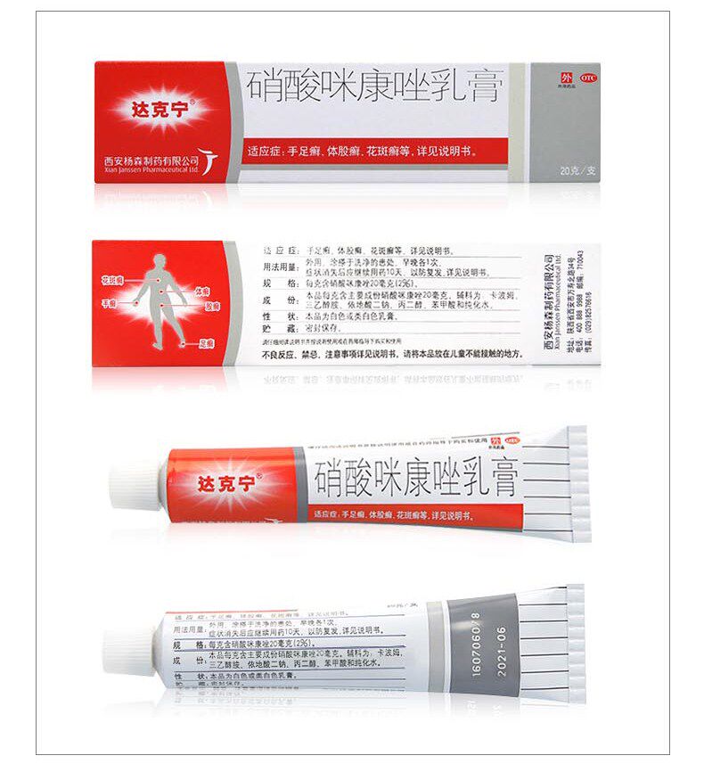 达克宁 Нитратный нитратный крем 20 г лечения зуд, ноги, ноги, ноги и ноги, Tinea, Tinea -Foot Sweat, грибковая инфекция