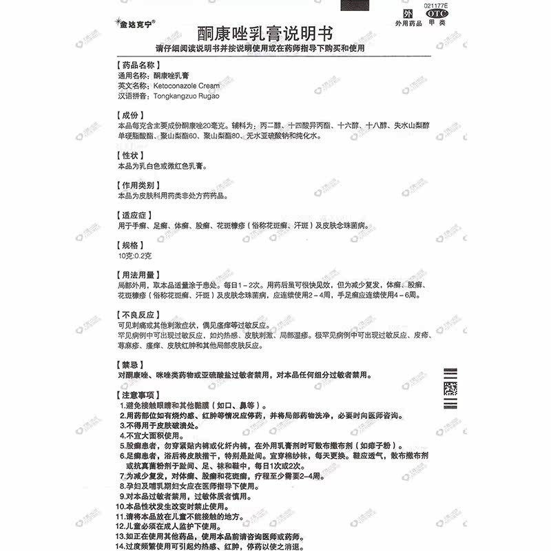 金达克宁 Кетоназол молочный крем 15 г рук -стричья стригущий лишай