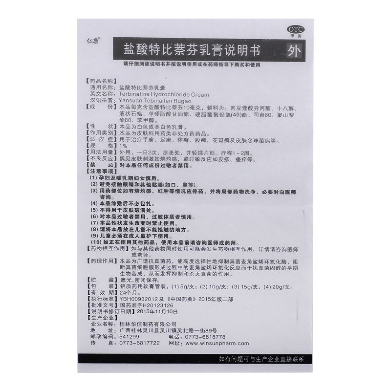 仁康 Гидрохлорид Тербин Фен Фен Крем 1%*10G*1 СВИД/КОНА Кожа кожа кожа Candida tinea tinea tinea tinea tinea