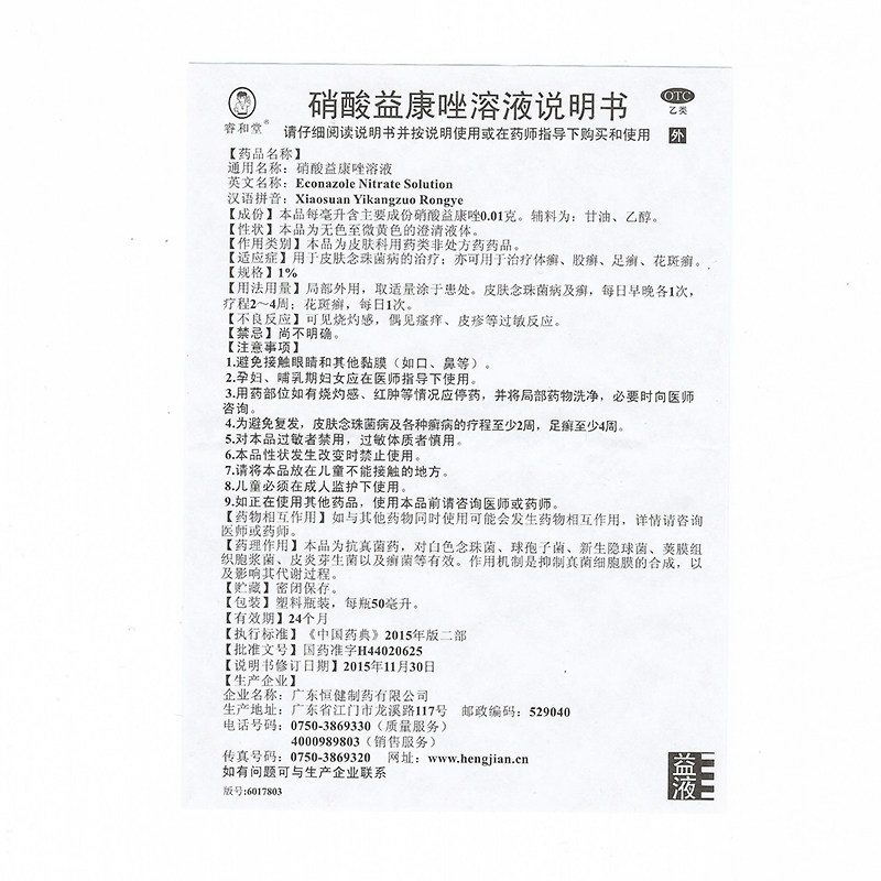 睿和堂 1% Спецификация раствора пинопоназола для нитрата используется для обработки Tinea Feet и Tinea и Tinea