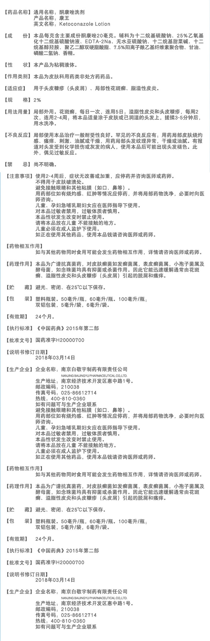 Официальный флагманский магазин Dianhong Kang King Ketonazole -Waso -stiching не -совместный шампунь кетоконазола ZQ