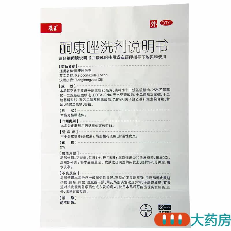 康王 Кетоконазол промывочный агент 50 мл*1 бутылка/коробка колька головы кожи голова