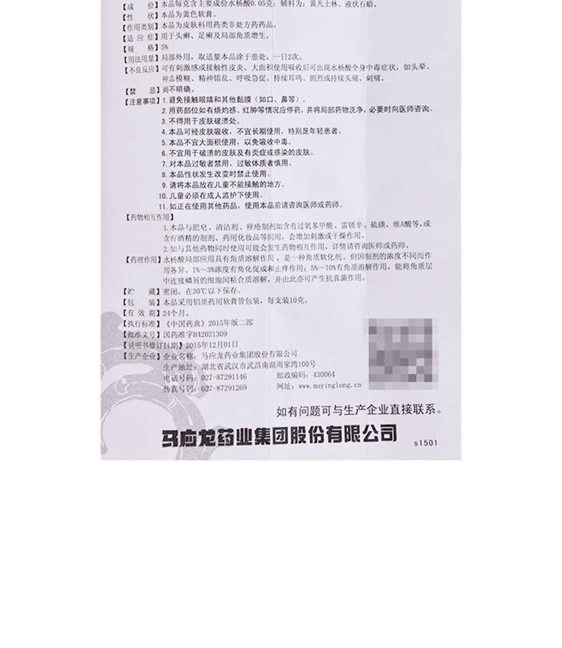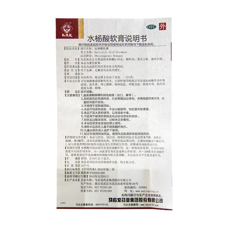 马应龙 Отшелушивающая мазь с салициловой кислотой, 10г, 1 шт