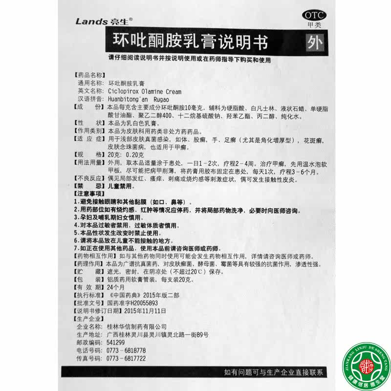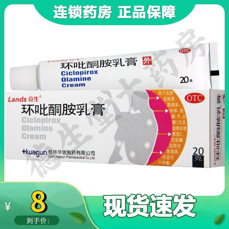 Lands/亮生 Циклор пироминовый крем 20 г*1 ветвь/коробка неглубокая кожная грибная корпус, рука, tinea, tinea