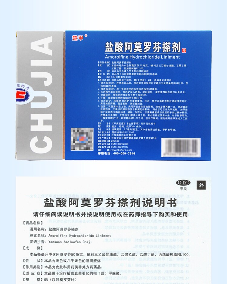 楚甲 Амоморфен гидрохлорид 2,0 мл*1 бутылка/коробка медицина ногтя для лечения чувствительной грибковой инфекции
