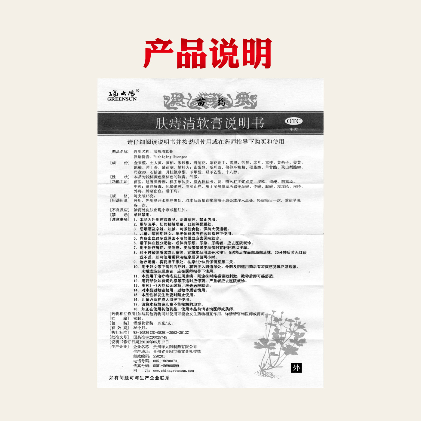 Геморрой геморрой кожи зеленого солнца очищают мази 15 г рук, ноги и стригущий лишай, стричья, погруженный во внутренние геморрой, отек геморроина и боль