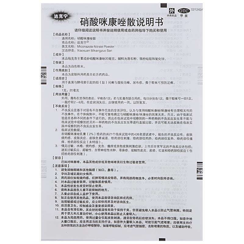 达克宁 SAN Powder 40G Аутентичный отшелушивающий нитрат нитрат нитрат нитрат нитрат нитроназол свободный грибковая инфекция грибки