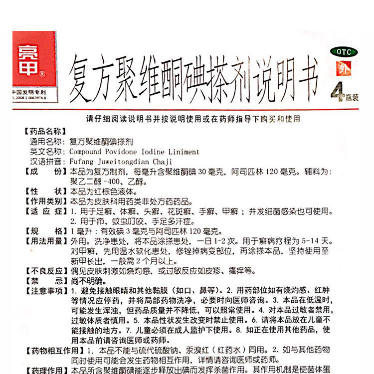 亮甲 Составной политон йод 2 мл*4 бутылки из стрижки с тонкой -крош