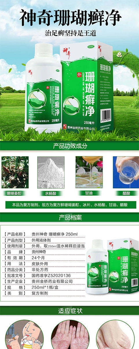 神奇 Коралловый стригущий лишай 250 мл стерилизует и снимает зуд, опоясывающий лишай, микоз, ногти на пальцах рук и ног, очищающее средство от кораллового кольца, лекарство от микоза стопы