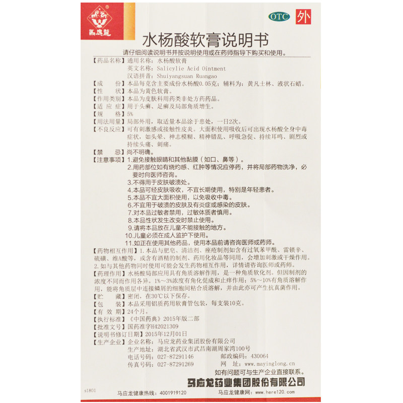 马应龙 Отшелушивающая мазь с салициловой кислотой, 10г, 1 шт