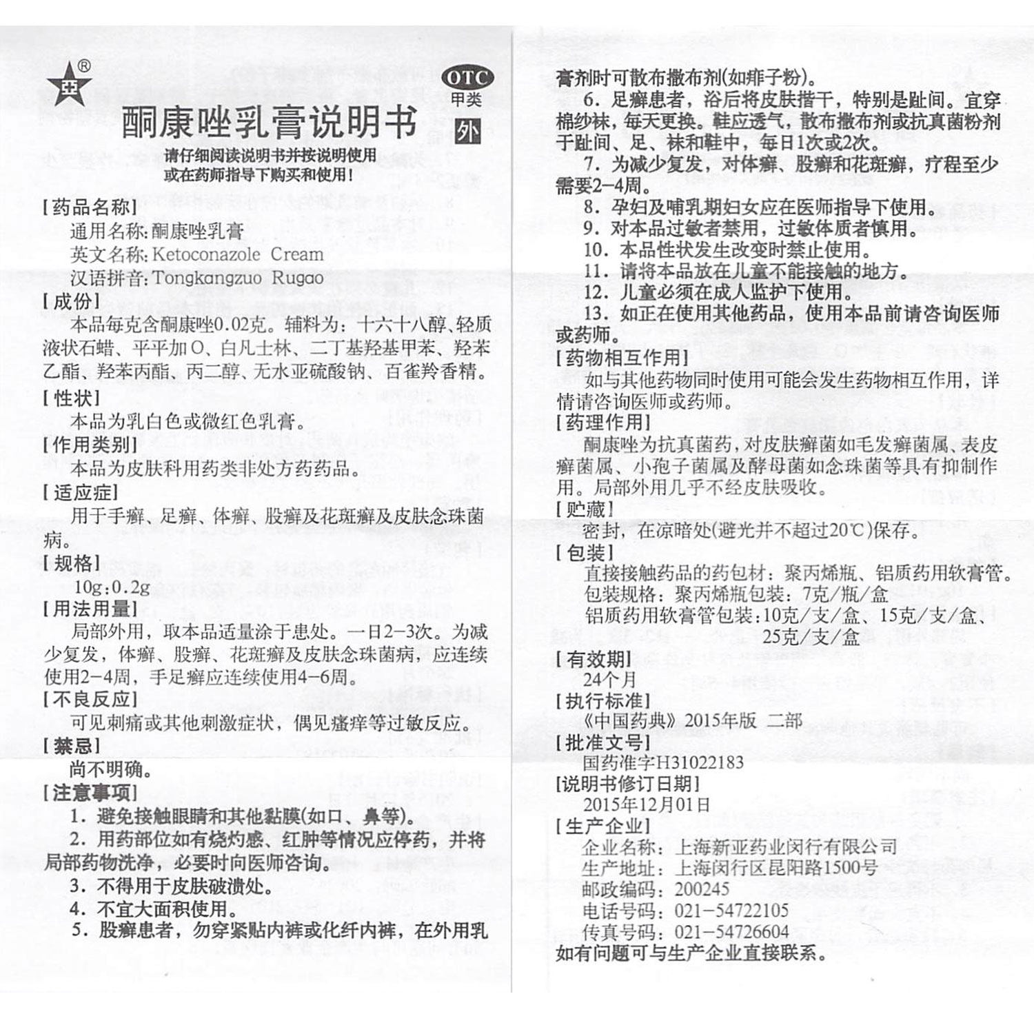 新亚富康 Кетоназол молочный крем 25G*1 Поддержка/коробка рука -назубель