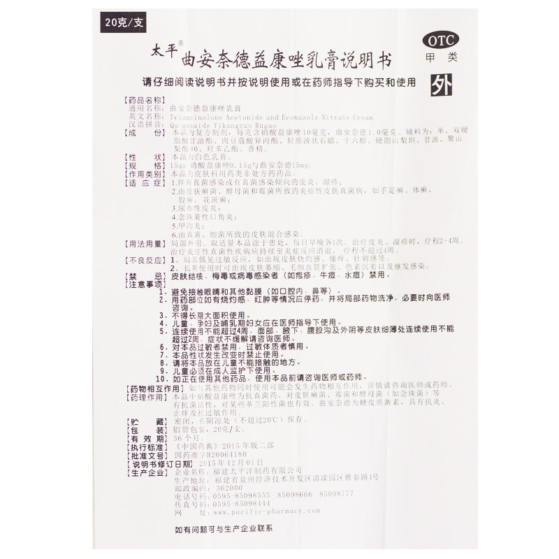 太平 Qu anniticozole cream 20g*1 Поддержка/коробка почерка и спортсменов, Tinea, Metalulflolar, Tinea tinea HR
