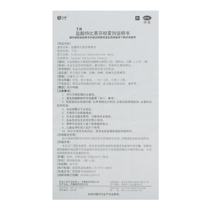 Tiecne соляная кислота спрей Tobyin 30 мл: 0,3 г*1 бутылка/коробка волдыри с водными