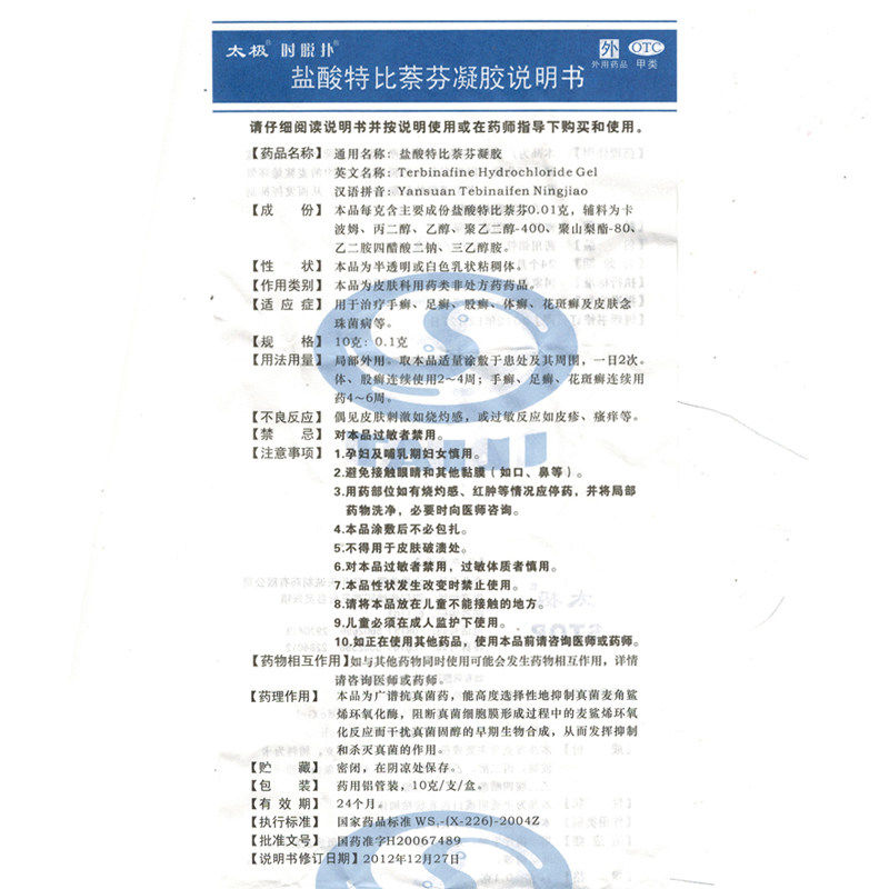 太极 Terbin Gel 10GCC 10GCC Hand Tinea tinea tinea tinea tinea tinea
