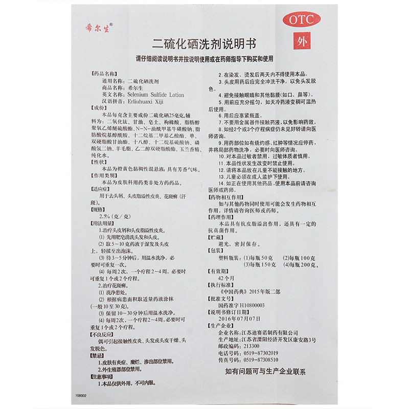 迪赛诺 Нанимать Symnoma Selenium Warch Agent 100 мл головы Tinea просторное дерматит Удаление перхоти воды