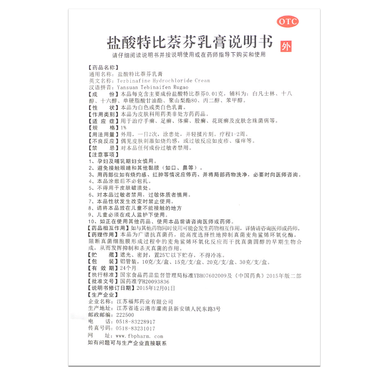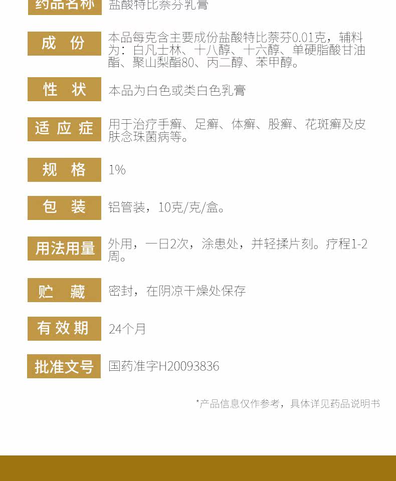 Spot] Чук -гидрохлорид тербининовый крем 1%*10G*1 Поддержка/коробка Tinea и корпус стричья OT