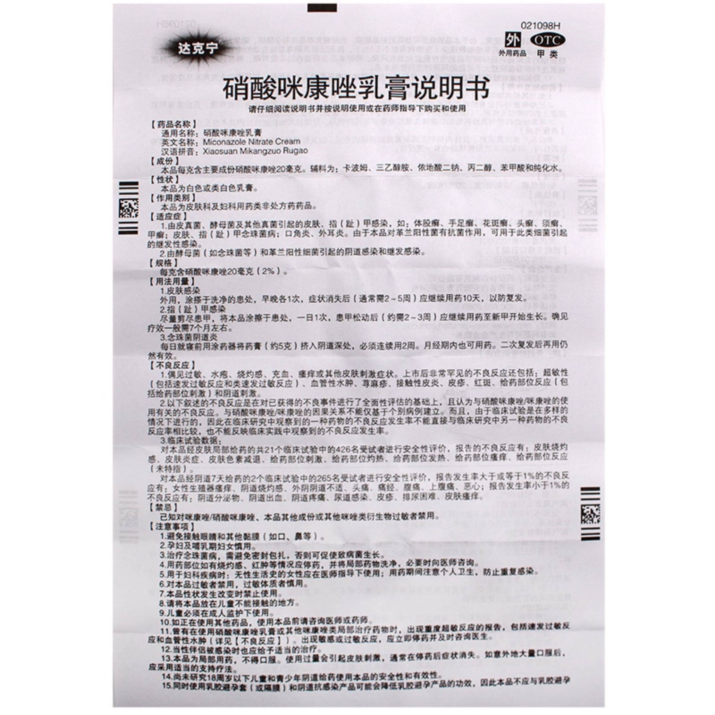 达克宁 Миконазол нитратный крем 20 г: (2%)*1 кусок/коробка кузов tinea tinea thorny thorny
