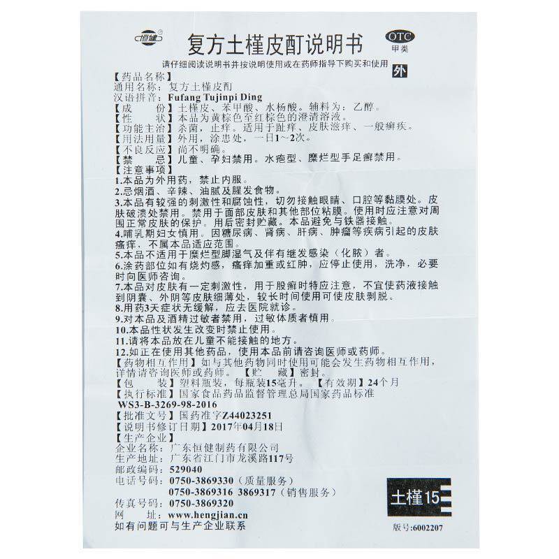 БЕСПЛАТНАЯ ДОСТАВКА] Хенгцзянь -соединение стерилизации 15 мл и зудящей зуд кожи, общее произведение заболевания стригущего лишания, подлинное