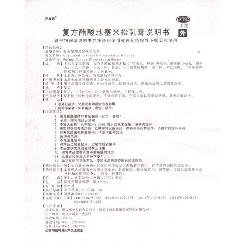 严静舒 DE составной уксусная кислота Dexamethasonium cream 20 г ограниченного зуда нейродерматита