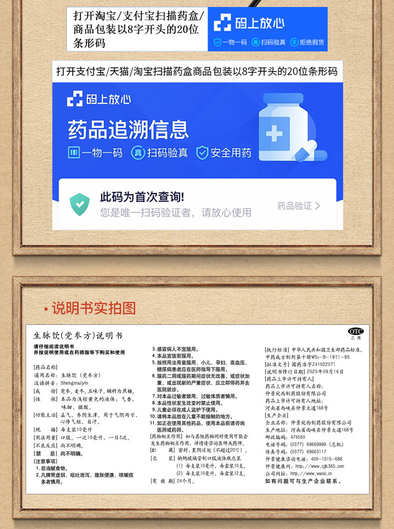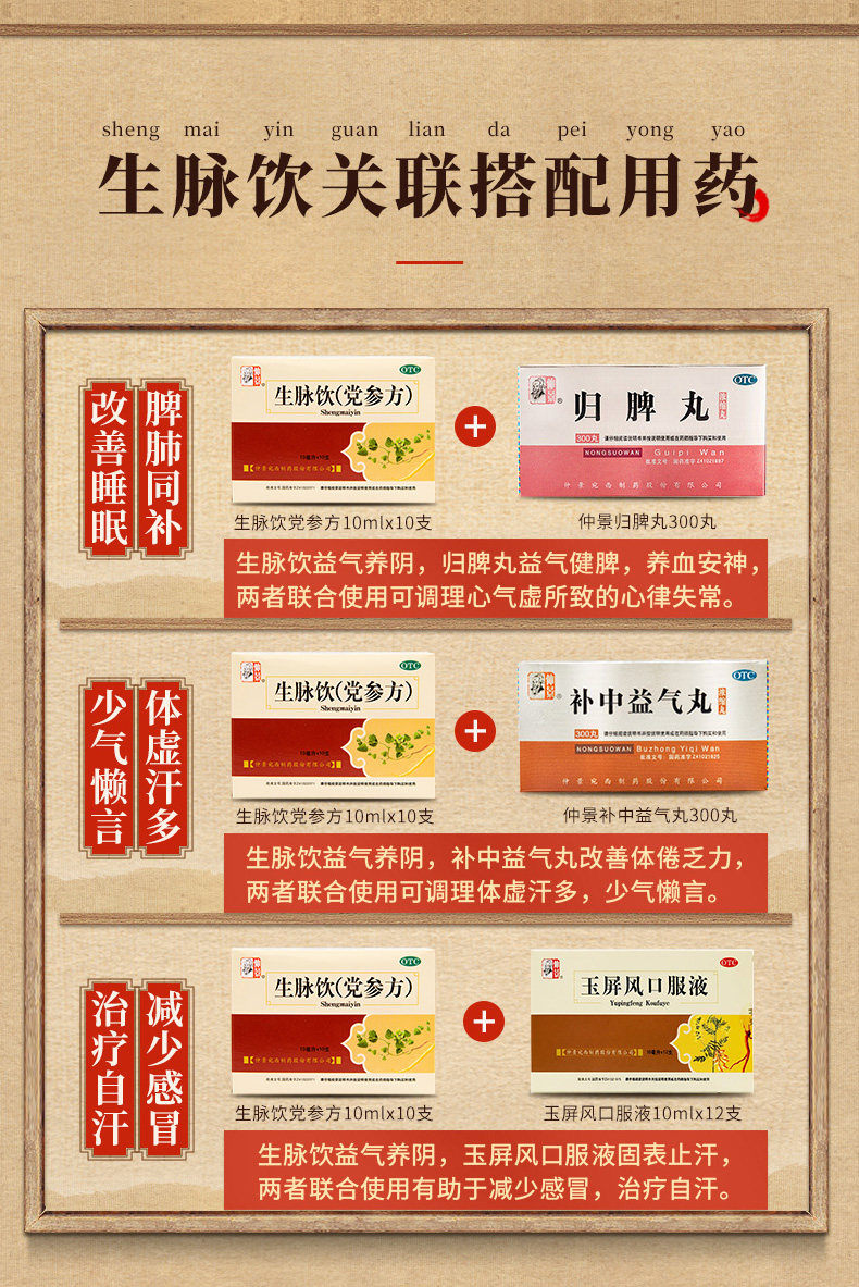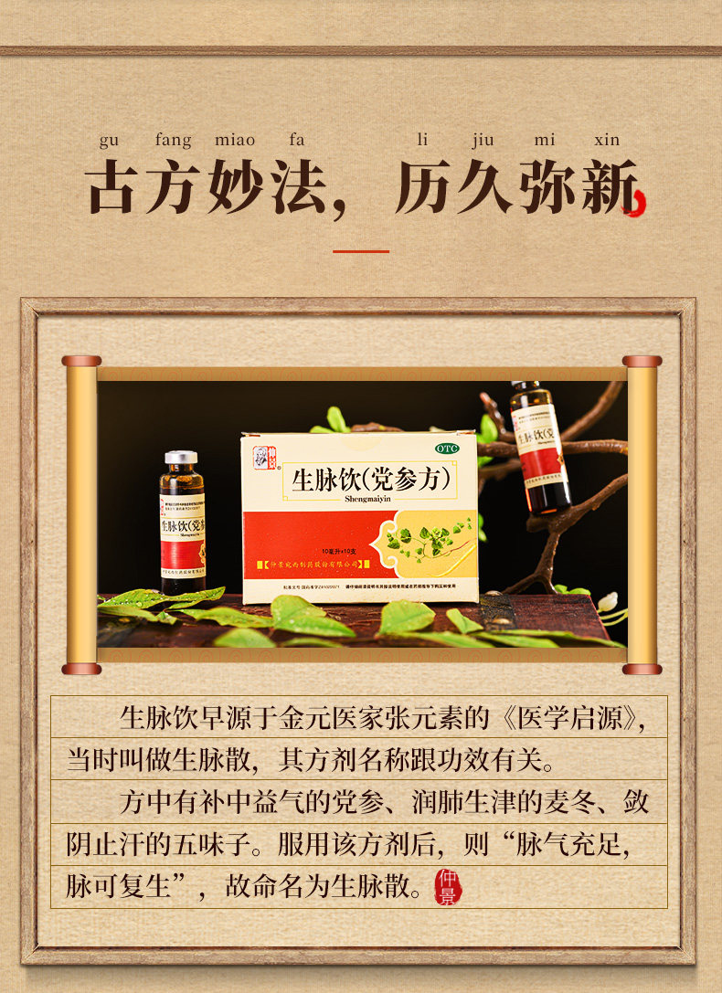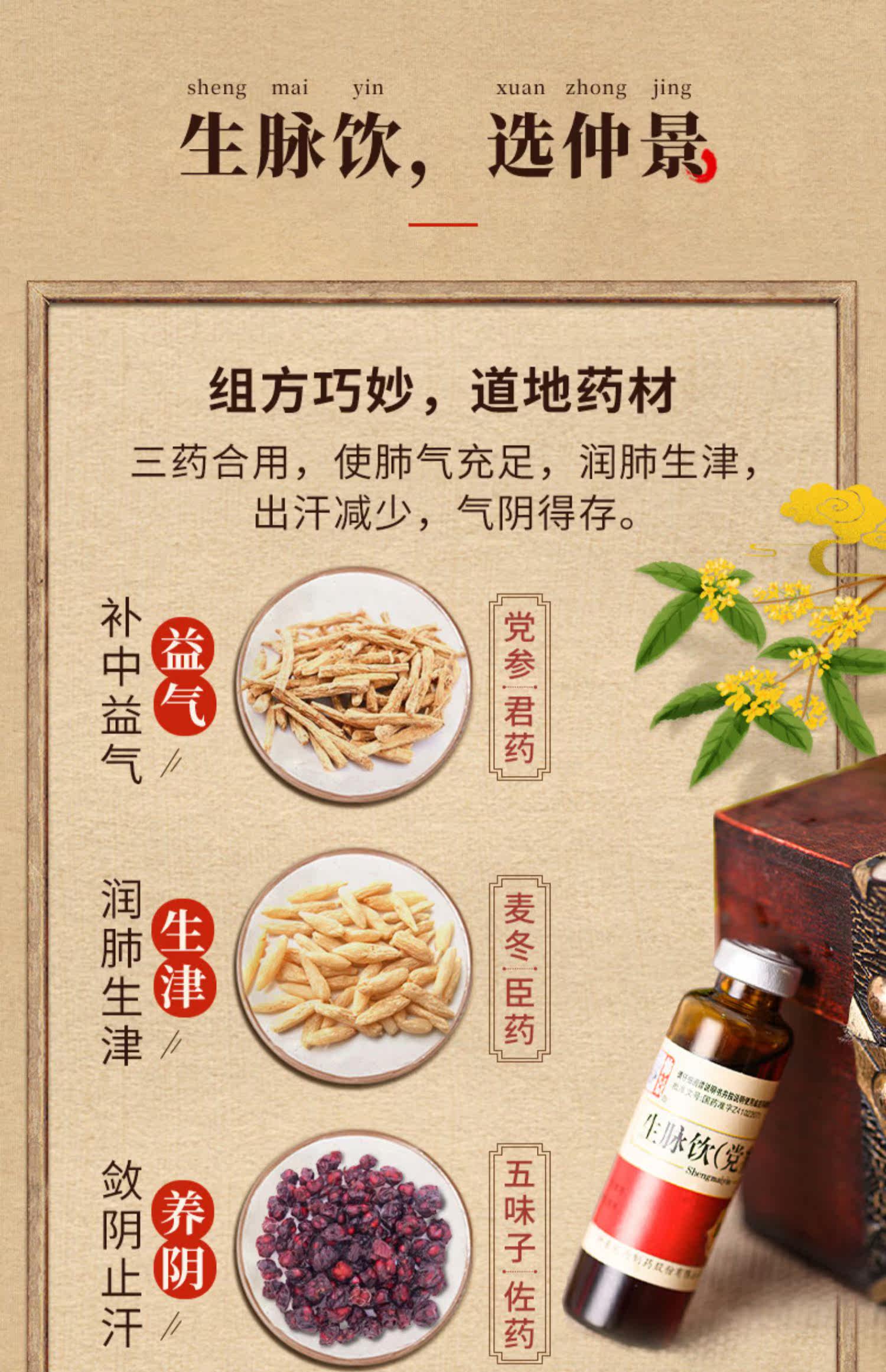 仲景 Shengmai Drink (вечеринка женьшень) 10 -отдача, ночные поты, потоотделение, разбитое горем, короткометражающую инь, Инь, Иньцзиньцзинь, Хэнань -Западный Западный