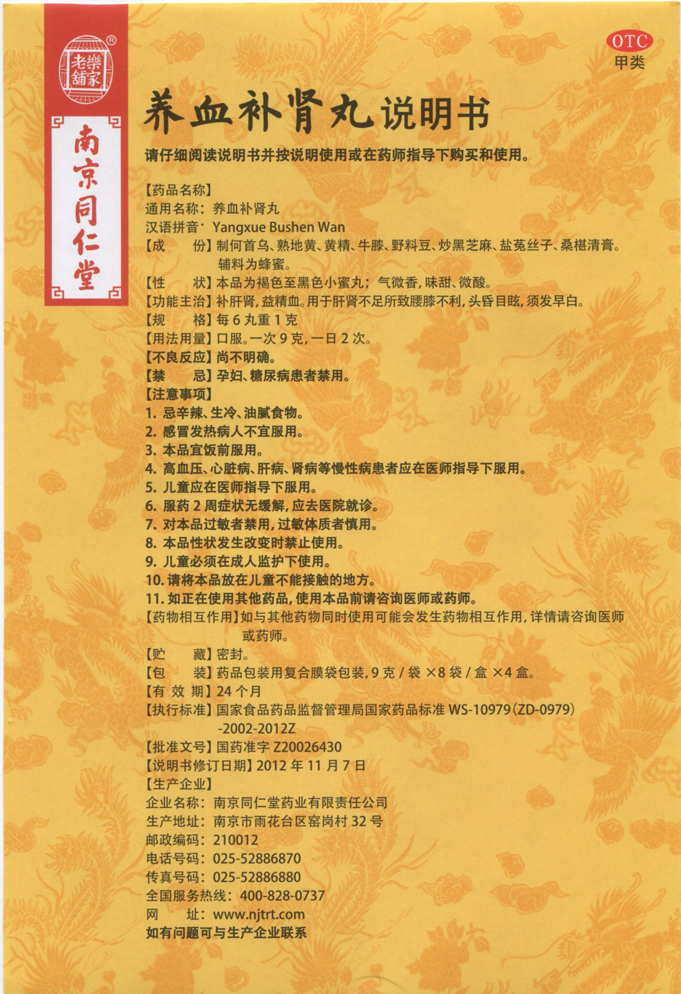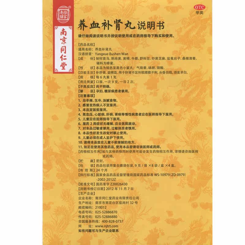 Скидка на упаковку] Nanjing Tongrentang Lejia Laopu кровопроката крови для почек.