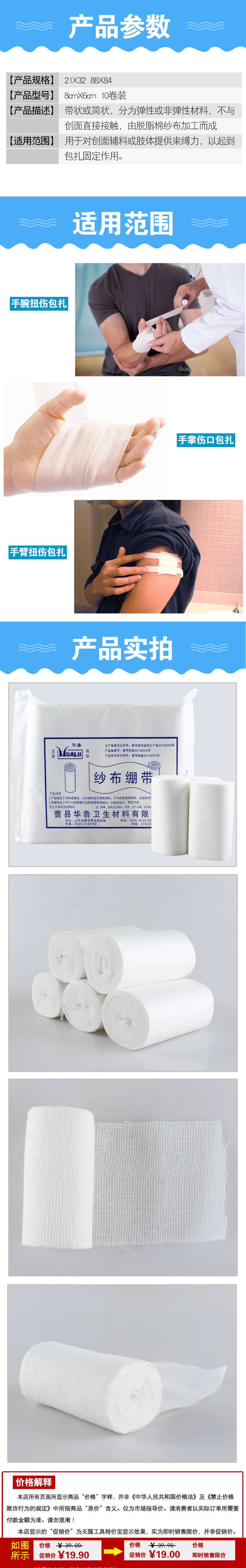 华鲁 Хлопковая марлевая качественная эластичная повязка, 8×600см