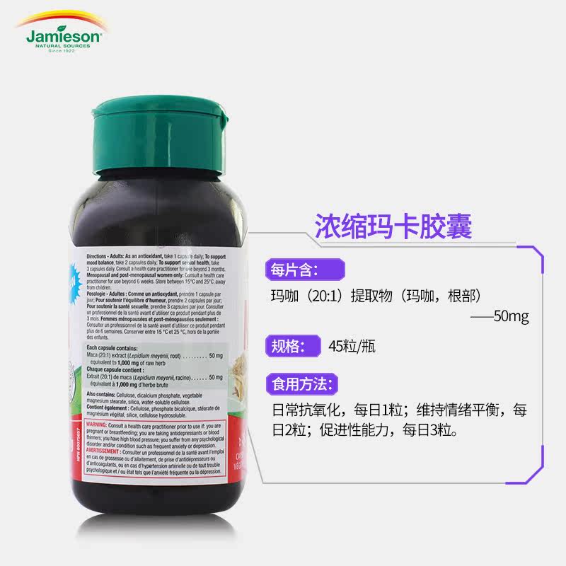 Jamieson BodyBuilding Импортированные капсулы Maga Maca Maca 45 для улучшения энергии против сна против